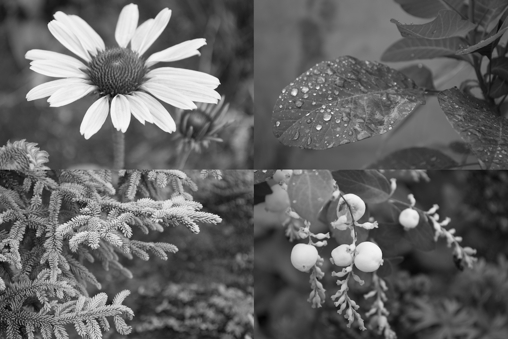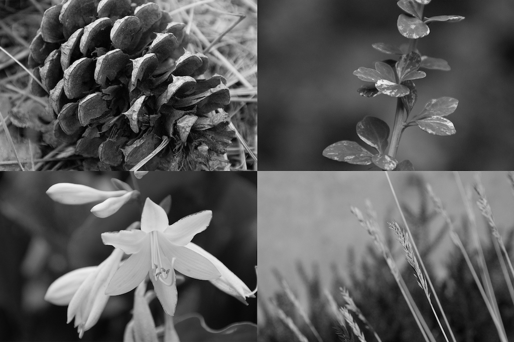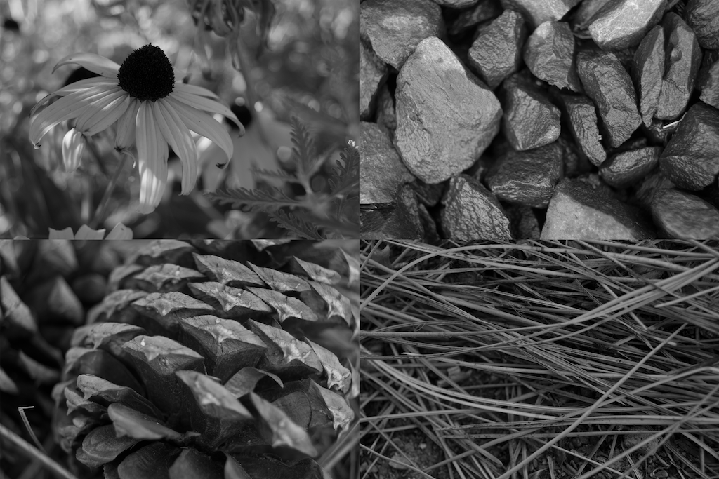 Students will compose four individual photos as one layout and focus on the natural world (plants, earth, etc.). Students will also visually illustrate their knowledge of design elements in their black and white prints. One print will exemplify texture, one of pattern, one of space, and the forth will show shape or form.